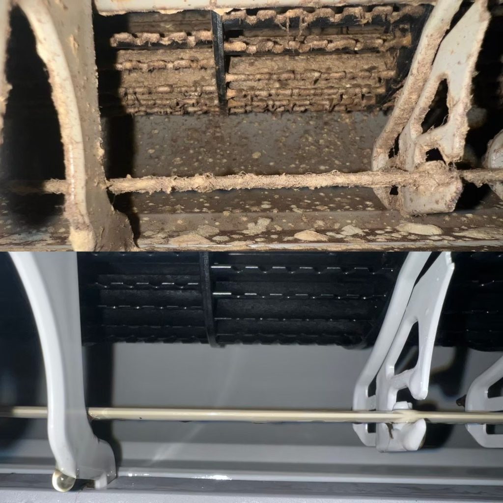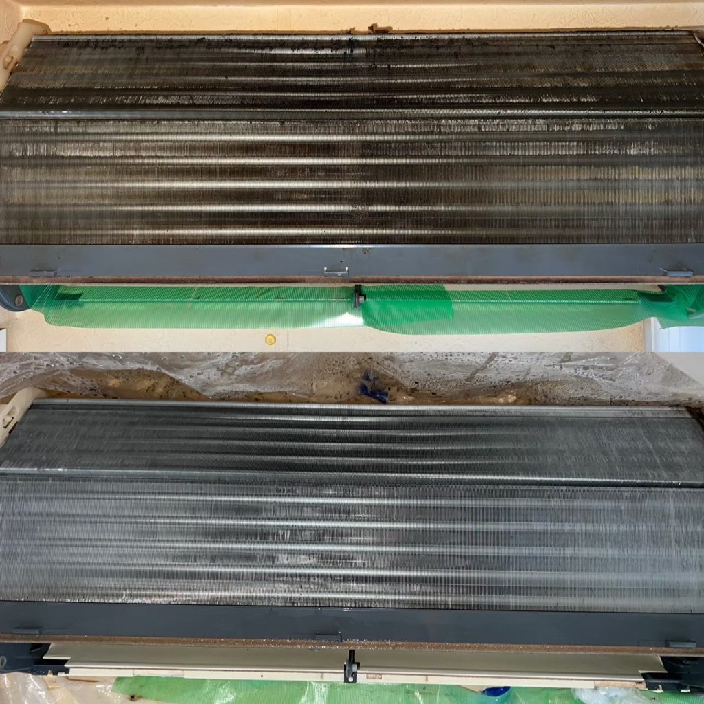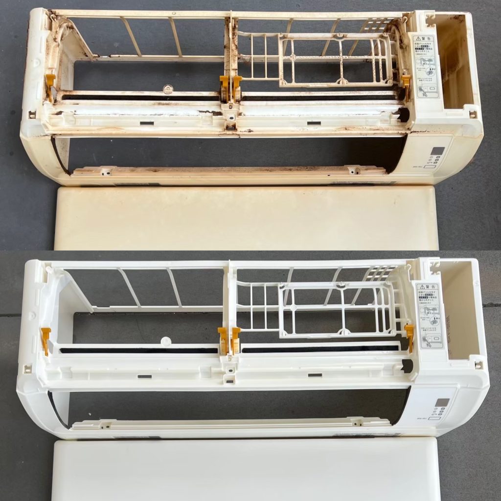 ファン部分のビフォーアフターを載せており、カビの取れ具合が良く分かります!