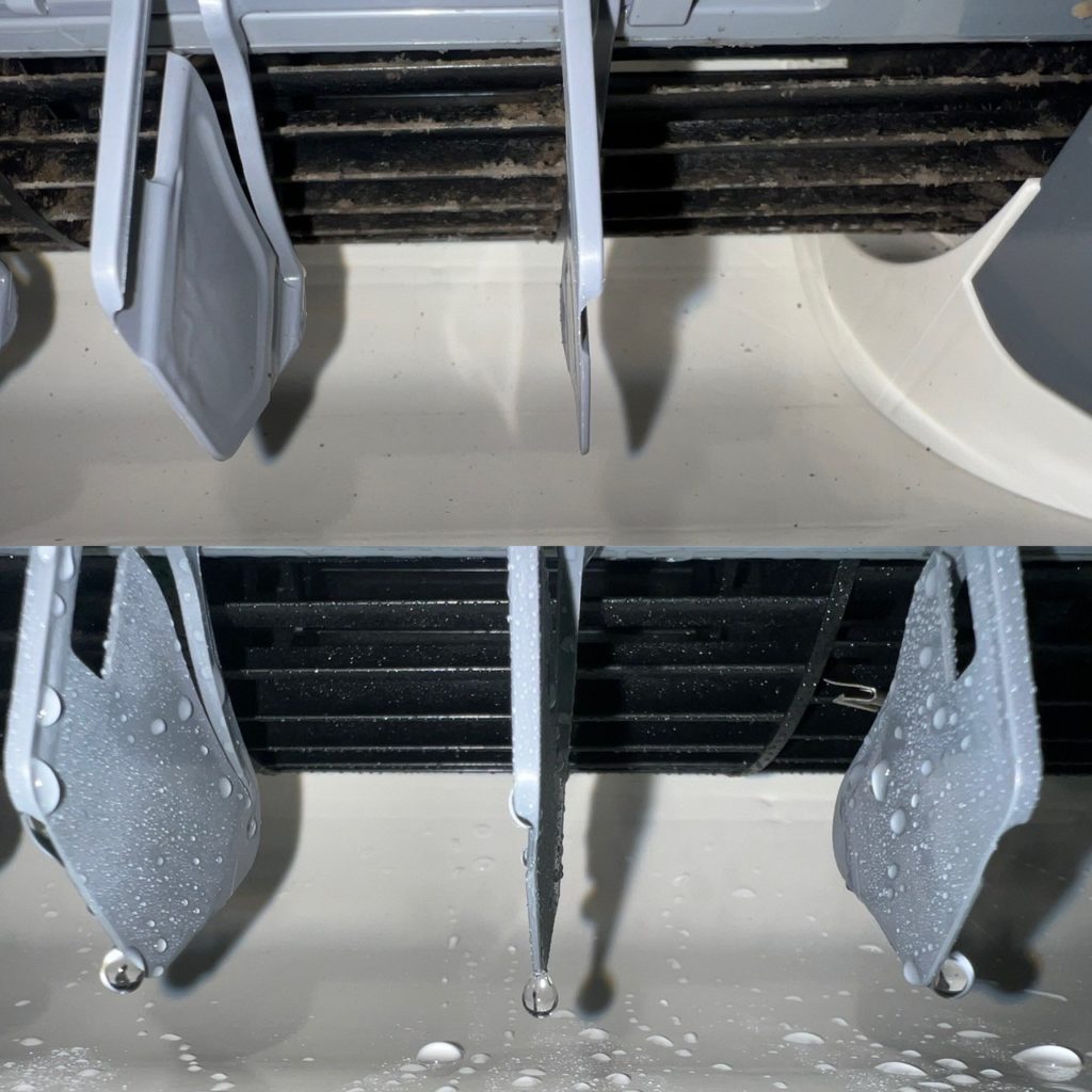 ファン部分のビフォーアフターを載せており、カビの取れ具合が良く分かります!