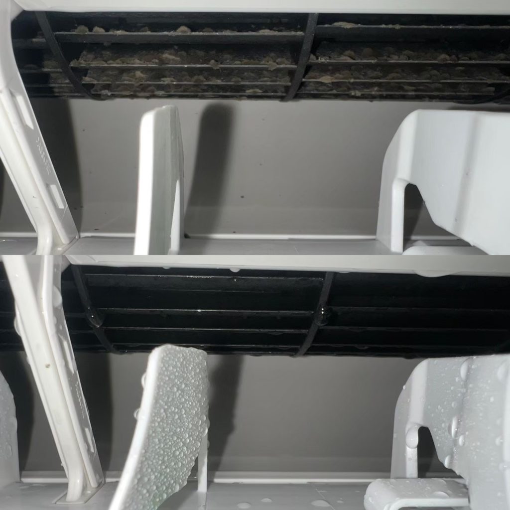 ファン部分のビフォーアフターを載せており、カビの取れ具合が良く分かります!