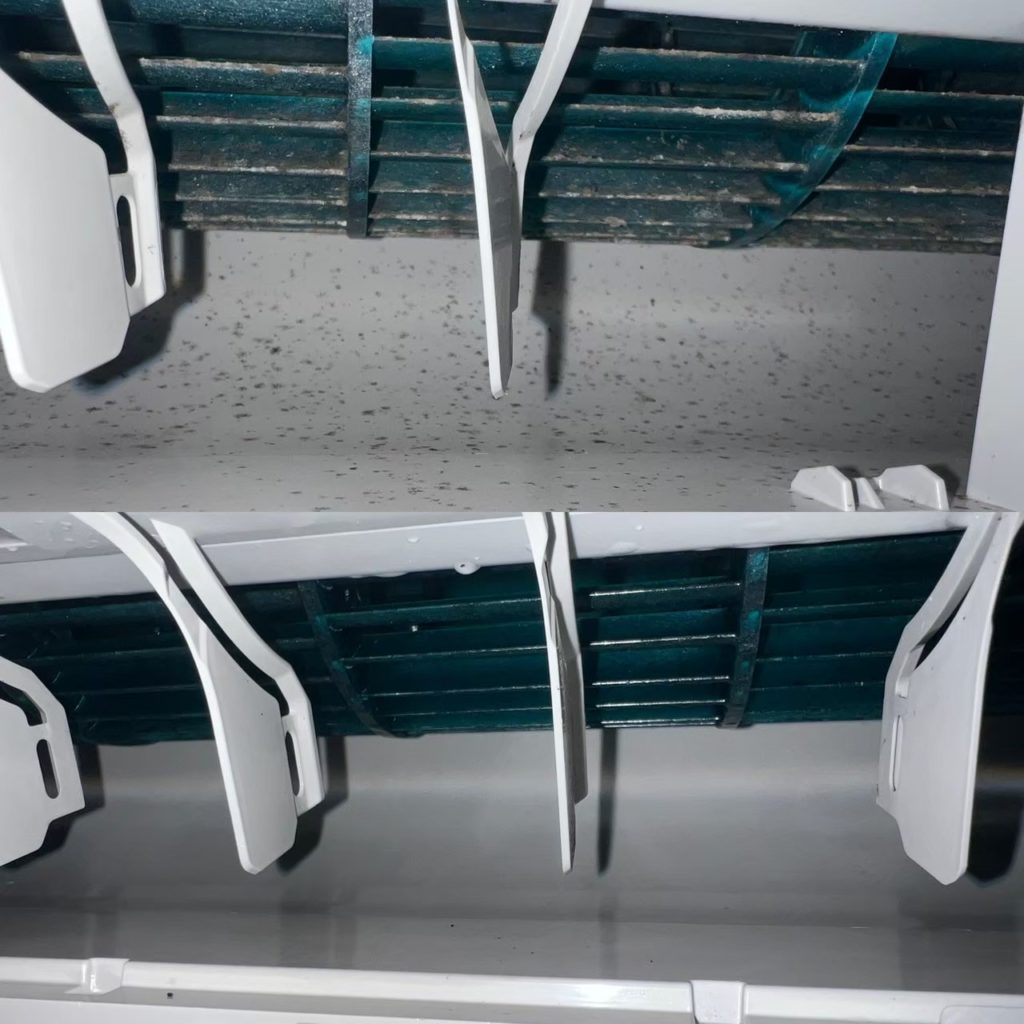 ファン部分のビフォーアフターを載せており、カビの取れ具合が良く分かります!